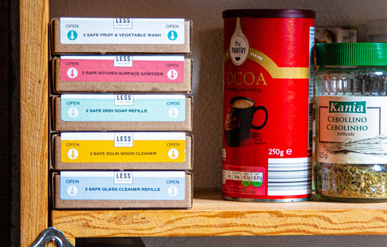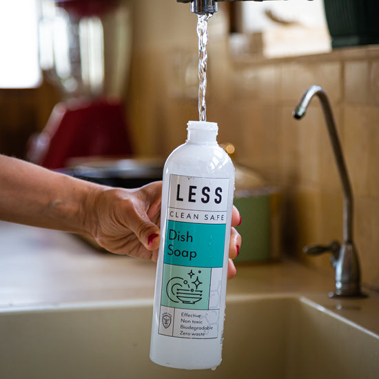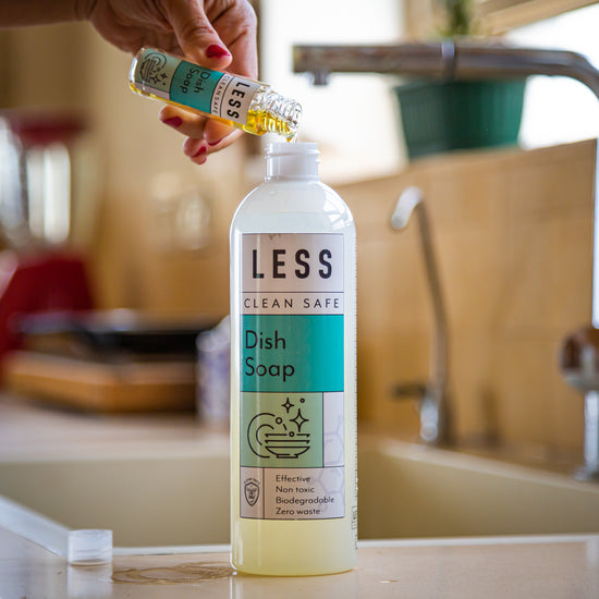 המהפיכה שלנו מוציאה את המים מהתהליך הייצור, ובכך חוסכת משמעותית בכל השלבים המזהמים בדרך: אין יותר צורך לשנע, לבקבק, לארוז ולאחסן בקבוקי פלסטיק חד-פעמיים. במקום לסחוב מים, חומרי הניקוי שלנו הם מגיעים בבקבוקי תרכיז קטנים, לערבוב עצמי בבית - בלי לסחוב מים ועם צמצום הוצאות וצמצום פסולת.