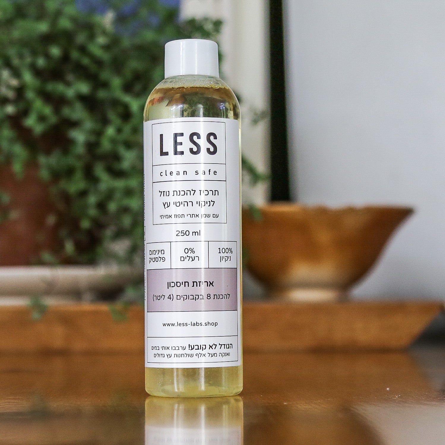 הנוסחה שלי מותאמת לעץ מלא (ונהדרת גם לעץ לא מלא :)) - מנקה ושומרת על המשטח באופן מקסימאלי ומקצועי. אני אולי נראה קטן, אבל ניתן להכין איתי 8 בקבוקים מלאים, שינקו ויחטאו לכם יותר מ-1,000 שולחנות עץ גדולים.